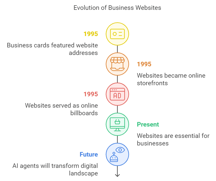 In 1995, a business card with a website address was a novelty. For small businesses, having a website was like opening a new storefront—but online. It wasn’t just about being visible; it was about showing that your business had embraced the future. Websites were a groundbreaking step into the digital world, even if, at first, they were little more than an online billboard, perhaps with a phone number and a few images. Fast forward to today, and having a website is as essential as having a phone number. Now, as we look toward the next wave of digital transformation, AI agents are poised to become just as fundamental.