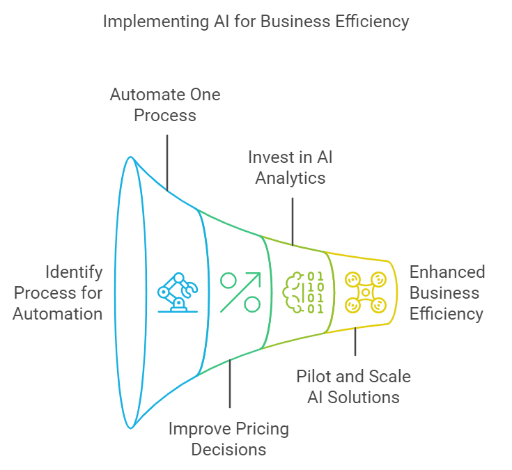 Here are some practical steps for small businesses to start using AI to increase efficiency and reduce costs: