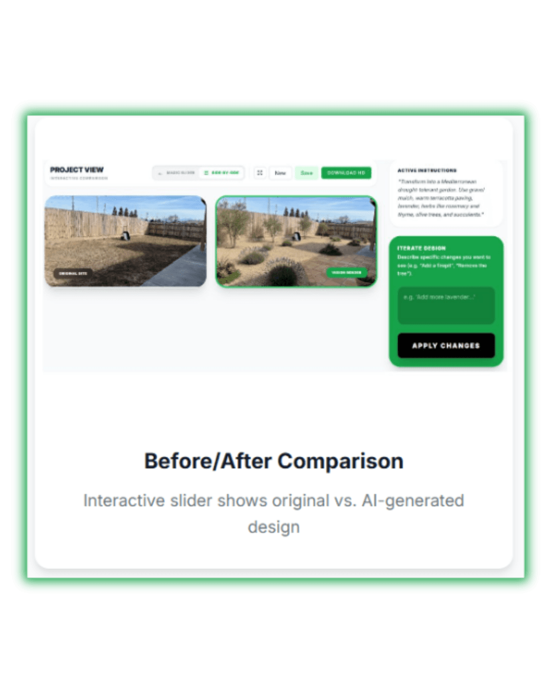 Generate stunning visualizations in seconds during consultations. Show clients exactly what their yard will look like before they commit to buying.